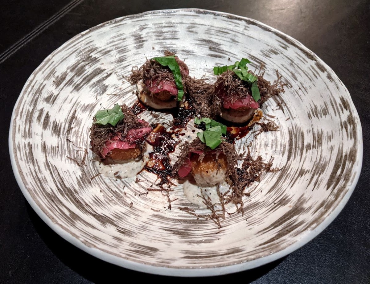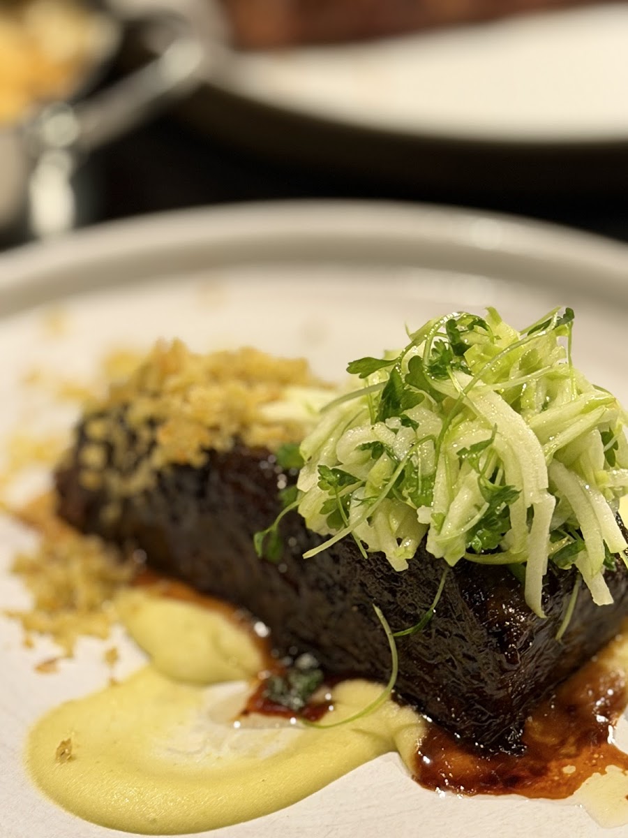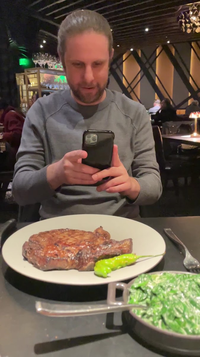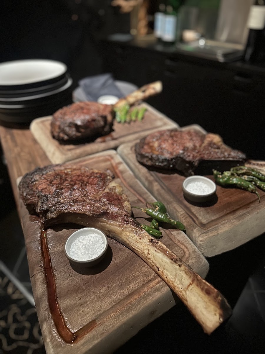 This steakhouse exceeded my expectations. The atmosphere when we went was bustling but quiet—the lighting is perfect to feel like an intimate, private meal. The steak was among the best I have had among Las Vegas’s best steakhouses. The ribeye was cooked perfectly and the crust and cap were perfect. I usually don’t add sauce to steak, but their four signature sauces paired really well. The sides were great. The heart of palm salad, the bacon wrapped shrimp, and the truffle Mac and cheese were among the best I’ve had. Even the complimentary Japanese milkbread and butter were excellent. The service was attentive, friendly, and non-invasive. So great. Top shelf ambiance. The restaurant was quite full, but they accommodated us as walk-ins on the spur of the moment. Loved this experience.